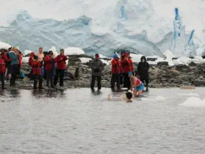 kayak team had a very special encounter with a leopard seal.The highlight of the afternoon for many of us was the polar plunge. Stripping off and immersing oneself in water that’s at 1 degree Celsius was surprisingly popular! Towels were specially provided by the crew, followed by a rapid zodiac shuttle back to Hondius for a long hot shower.