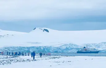 the narrow MacFarlane Strait. Jagged peaks rose sharply from the water, and the strait’s shifting blues and silvers seemed almost unreal in the morning.Bymid-morning,theshipanchoredoffYankeeHarbour,anatural,crescent-shapedrefuge long used by sailors,sealers, and—morerecently—wildlife enthusiasts. Conditions were good, allowing for a split morning of land exploration and zodiac cruising.Onshore,lifewasinfullswing.ThelargeGentoopenguincolony—nearly5,000strong—filled theairwiththeircallsandbustlingactivity.Amongthem,visitorsspottedahandfulof Chinstrappenguinsweavingtheirwaythroughthecrowd,theircrispmarkingsmakingthem easytopickout.Notfaraway,aloneAdéliepenguinstoodattheedgeofthecolony,almost asifcontemplatingwhetherit had shown up to the wrong party. An elephant seal dozed lazily alongthebeach,barelyacknowledgingitsaudienceexceptfortheoccasional,half-hearted flipper scratch.Outonthewater, the zodiac cruisebrought yetanotherperspective.AsleekMinke whalesurfacedrepeatedlyneartheboats, itsdarkshapeglidingsilentlybeneaththe wavesasitfed.Moreelephantseals loungedonscatteredpatchesofshoreline, perfectlyunbotheredbythepassing zodiacs.