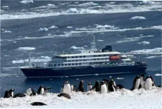 0745Good morning! It’s time for your wake-up call.0800Another delicious breakfastisservedin the dining room.1030KoenhasworkedasawhalewatchguideinIcelandandTonga.Please join himin the lounge to hear his personal experience with several whale species while living abroad.1230Our restaurant staff welcome you in the restaurantto enjoy lunch. After lunch you will receive your bill in your cabin. We will call you by deck to make payments at reception – Pleaselisten for announcements.1430MarcelohasalotofknowledgeaboutAntarcticexplorationhistoryand thisafternoonhewilltalkintheloungeaboutthefamous“Gerlache Expedition”1615LuciaisaproudArgentinian,pleasemeetherintheloungeasshewill talkaboutthehistoryofherbeautifulhomecountryandsharecultural insights.1815FarewellToastandpresentationoftheSlideshow-Pleasejoincaptain Jan and the expeditionteam for atoast to our wonderful voyage through the roughseasoftheSouthern Oceanandaslideshow ofour expedition to the beautiful White Continent.1900A special dinner willbe servedinthedining room. Please walk slowly on the ship, never rush. Keep at leastone hand for the ship. Shut all doors firmly andkeep fingers away from door frames.“If Antarctica were music, it would be Mozart. Art, and it would be Michelangelo. Literature, andit would be Shakespeare. And yet it is something even greater; the only place on earththat is still as it should be. May we never tame it.” Andrew Denton