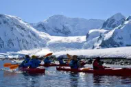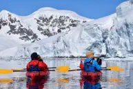 The first kayaking program of the Oceanwide Expeditions 2025-26 Antarctic season began in light winds and bright sunshine at Danco Island.An intrepid team of adventurers set forth in tandem kayaks to explore the icy waters of the Errera Channel, beneath the steep glaciated peaks of Rongé Island.That same afternoon, our kayakers launched into Neko Harbour, following a 5km route to the head of the fiord, where we marvelled at the dramatic sight of enormous tidewater glaciers tumbling down from the jagged peaks of the Actowski Peninsula. Returning to our Hondius home, we celebrated the end of a remarkable day of Antarctic kayaking adventures.The following day we embarked on an exploration of Palaver Point at Two Hummock Island. Colder overcast conditions offered a stark reminder of the harsh Antarctic environment, as we padded past Gentoo penguin colonies towards an isolated bay at the south end of the island. Here we encountered a sleeping Humpback whale, where we quietly observed the gentle rhythmic breathing of this giant cetacean.In the Graham Passage that afternoon we witnessed the remarkable sight of a solitary juvenile Humpback whale lunge feeding within a few metres of our kayak fleet. Amid icy tidal currents, we watched inawe as this powerful animal swam beneath our kayaks, surfacing between us to scoop clouds of krill behind its baleen plates.Our third day began at Brown Station, where we followed a route past resting Weddell seals and nesting Imperial cormorants into the grand glacial environment of Skontorp Bay. We slalomed between calved icebergs a safe distance from the terminal face of the tidewater glacier, before following an offshore route back to Hondius across the magnificent waters of Paradise Harbour.Later that day a small team of paddlers explored the glacial landscape of Stony Point, where we encountered a resting Leopard seal on a small ice floe. We were able to approach this magnificent pinniped as it slept alone on its icy platform, sharing a remarkable experience with this beautiful creature, at home in its Antarctic environment.Our final kayaking day took place in the South Shetland Islands - our morning paddle featured anexploration of Yankee Harbour on Greenwich Island, where we braved wind and cold to complete a circuit of the glacial bay beneath steep coastal hills.The afternoon - our final kayaking adventure - brought a greatest challenge of the trip aswe rounded Edinburgh Hill on Livingston Island. Riding impressive Southern Ocean swells, we admired the vertical